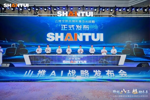 王志堅(jiān)、駱漢賓、蘇子孟、李士振及中建八局總工程師亓立剛、山推股份公司總經(jīng)理張民等領(lǐng)導(dǎo)嘉賓共同按下山推全新LOGO及AI戰(zhàn)略啟動(dòng)按鈕,宣告山推正式邁進(jìn)品牌與技術(shù)升級(jí)的新時(shí)代。