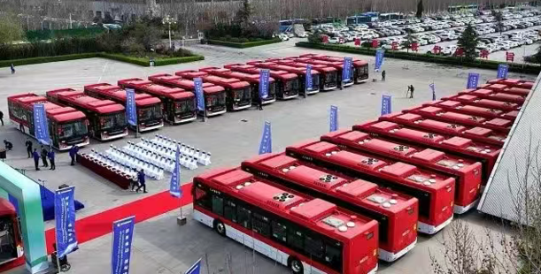(山東重工旗下中通客車出口智利的895輛純電動客車訂單的首批車輛在山東聊城發車)