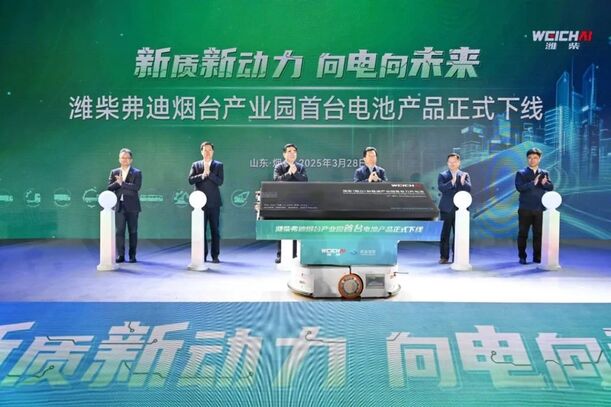 山東重工旗下濰柴弗迪煙臺產業園首臺電池產品正式下線