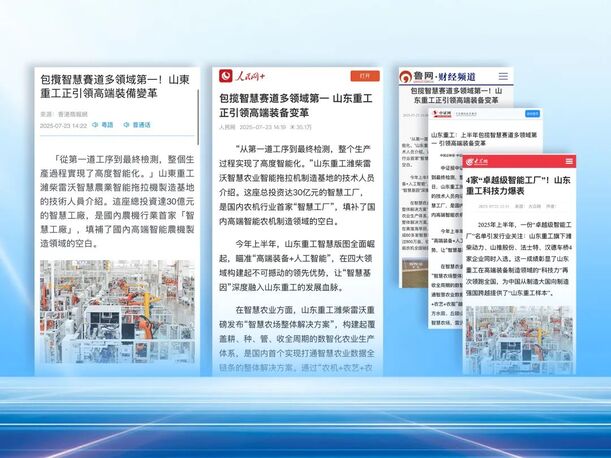 近日,人民網、大眾網、鳳凰網、中證網等各大媒體及行業媒體關注山東重工上半年包攬智慧賽道多領域第一,引領高端裝備產業變革,讓我們一起來看一下。