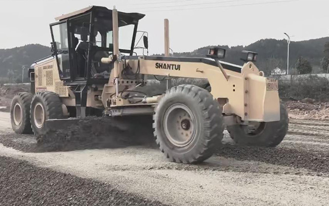 山東某國道道路建設項目施工,山推SG18-3平地機先后承擔了該工程的路基平整及后續(xù)路面修筑散布石子等物料的工作,施工方對山推平地機的施工效率和鏟刀更大調角范圍非常滿意,并對整個施工過程中山推平地機的維護便捷性和操作舒適性給予了稱贊,表示山推該款平地機是名副其實的道路施工利器。