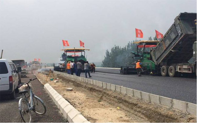 SRP95M攤鋪機某高速路段雙機連鋪