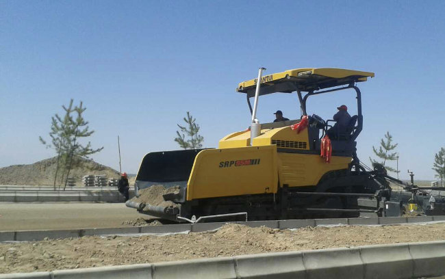 山推SRP95M攤鋪機在甘肅XX戈壁灘公路施工