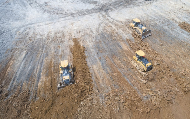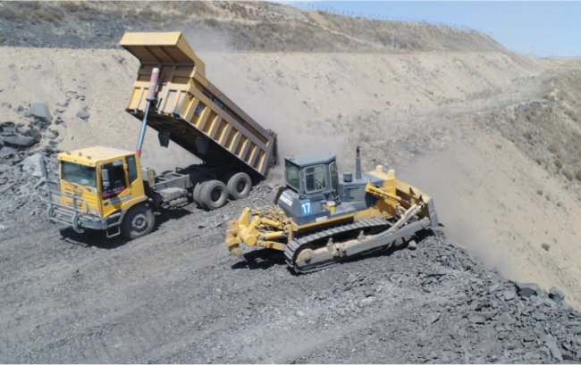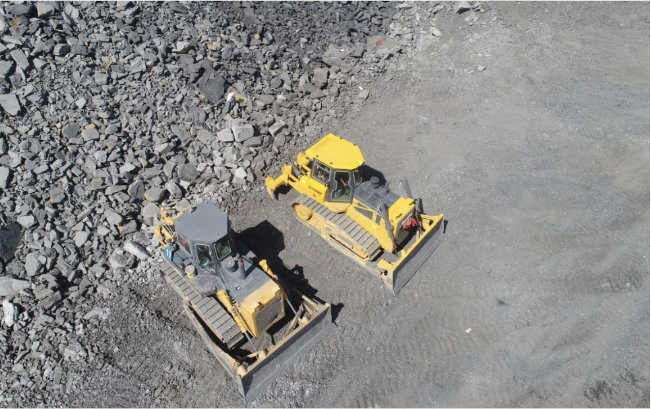 國內(nèi)西南某金屬礦排土場施工機(jī)群作業(yè),山推推土機(jī)以動力足、質(zhì)量好、效率高、故障率低贏得該礦山青睞,多次購買山推推土機(jī)。目前,該排土場使用多臺多種系列山推機(jī)型。