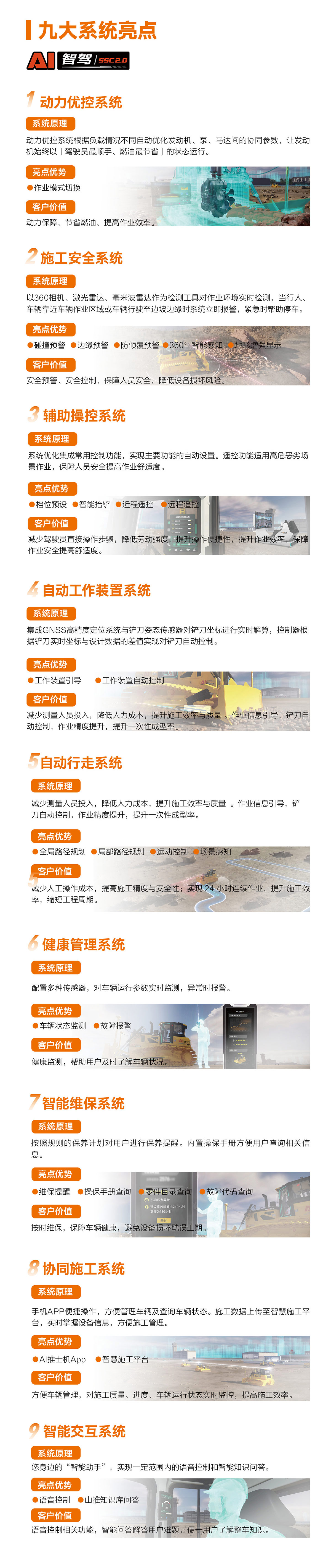 AI智駕:DE26-X3純電推土機,可基于山推SSC( SHANTUI Smart Constuction)技術平臺實現AI升級,融合人工智能、大數據相關技術,構建 “感知 - 決策 - 執行” 全智能閉環,實現工況研判、路徑動態優化、鏟刀厘米級精控,以技術革新引領工程機械智能化躍遷,是行業從 “機械作業” 向 “智能決策” 跨越的典范之作。