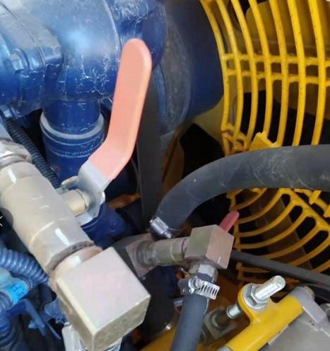 5、發(fā)動(dòng)機(jī)防凍液排干凈后,關(guān)上水散熱器放水閥門;